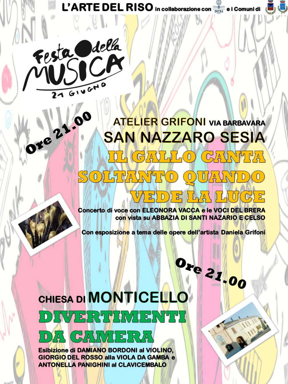 Quest’anno gli incantevoli borghi di San Nazzaro Sesia e Granozzo con Monticello, all’interno del circuito turistico culturale dell’ ”Arte del Riso”, hanno deciso aderire alla Festa della Musica.