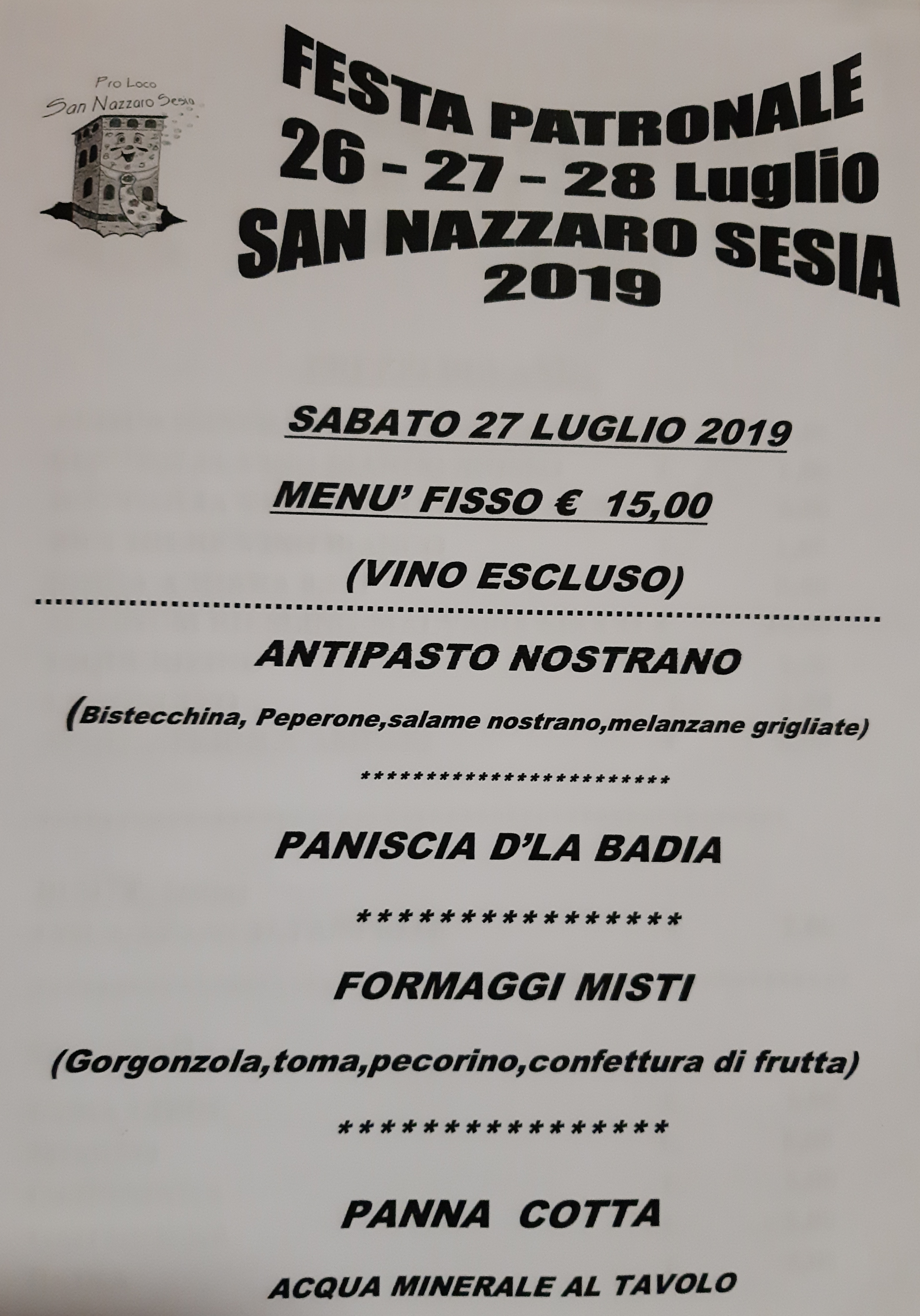Festa Patronale a San Nazzaro Sesia - 26, 27, 28 luglio 2019