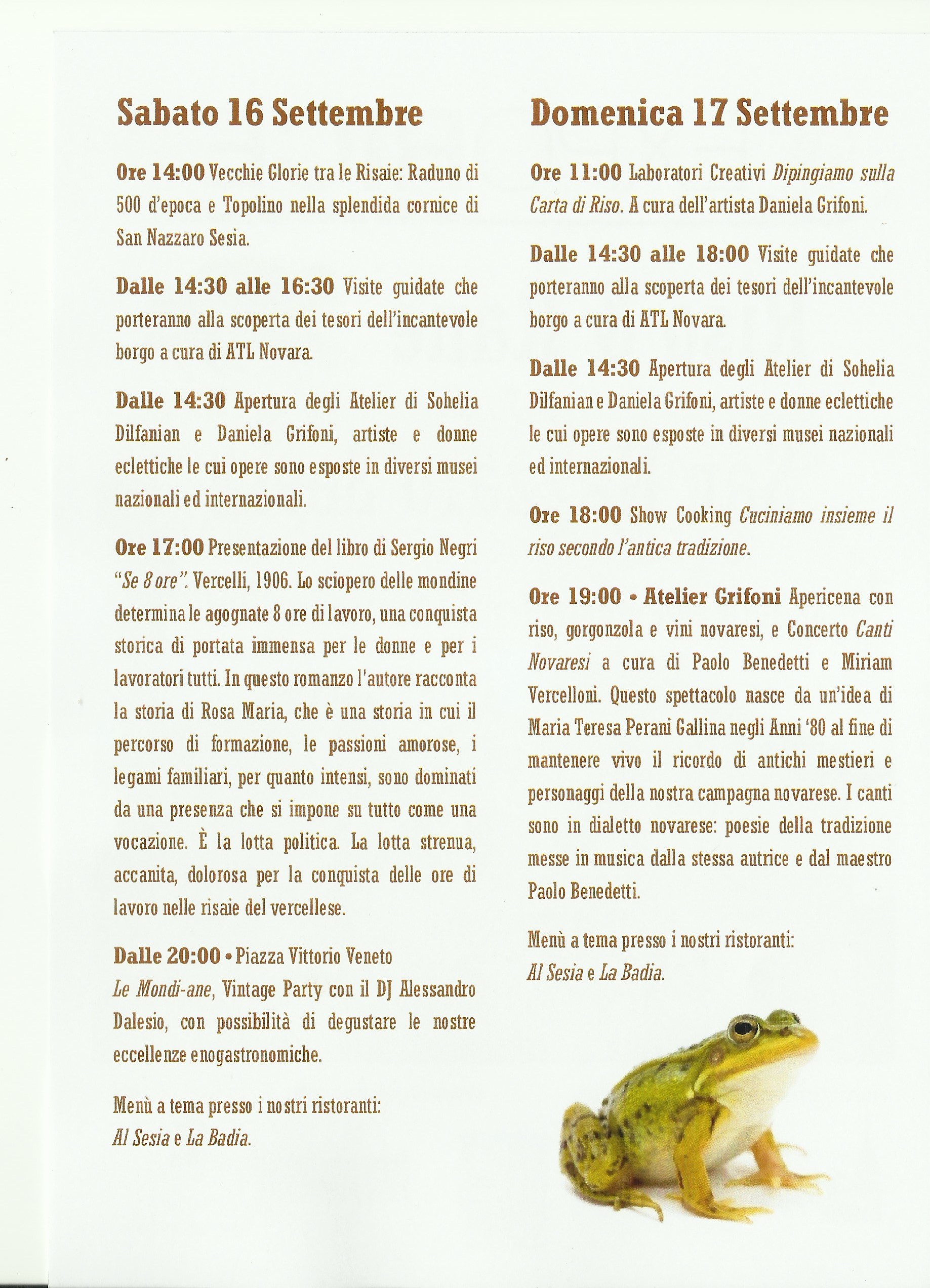 16/17 settembre Riso e Rane - San Nazzaro Sesia - Exporice 2017