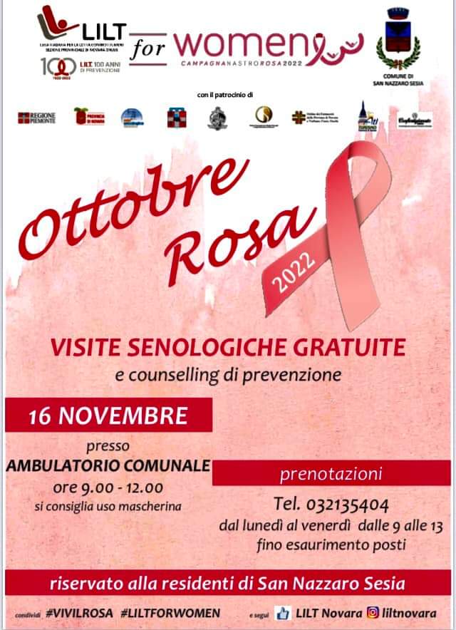 Via Barbavara 1 , in occasione del mese in rosa, dalle 9 alle 12 sara’ possibile effettuare una visita senologica gratuita da prenotarsi con la modalita’ indicata in locandina.