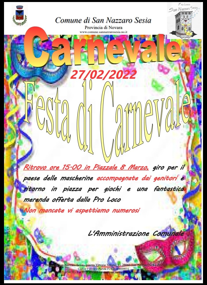 Festa di Carnevale 26 e 27 febbraio 2022