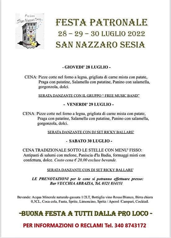 In allegato programma festa Patronale 2022 di giovedì 28 fino a sabato 30 compreso.
