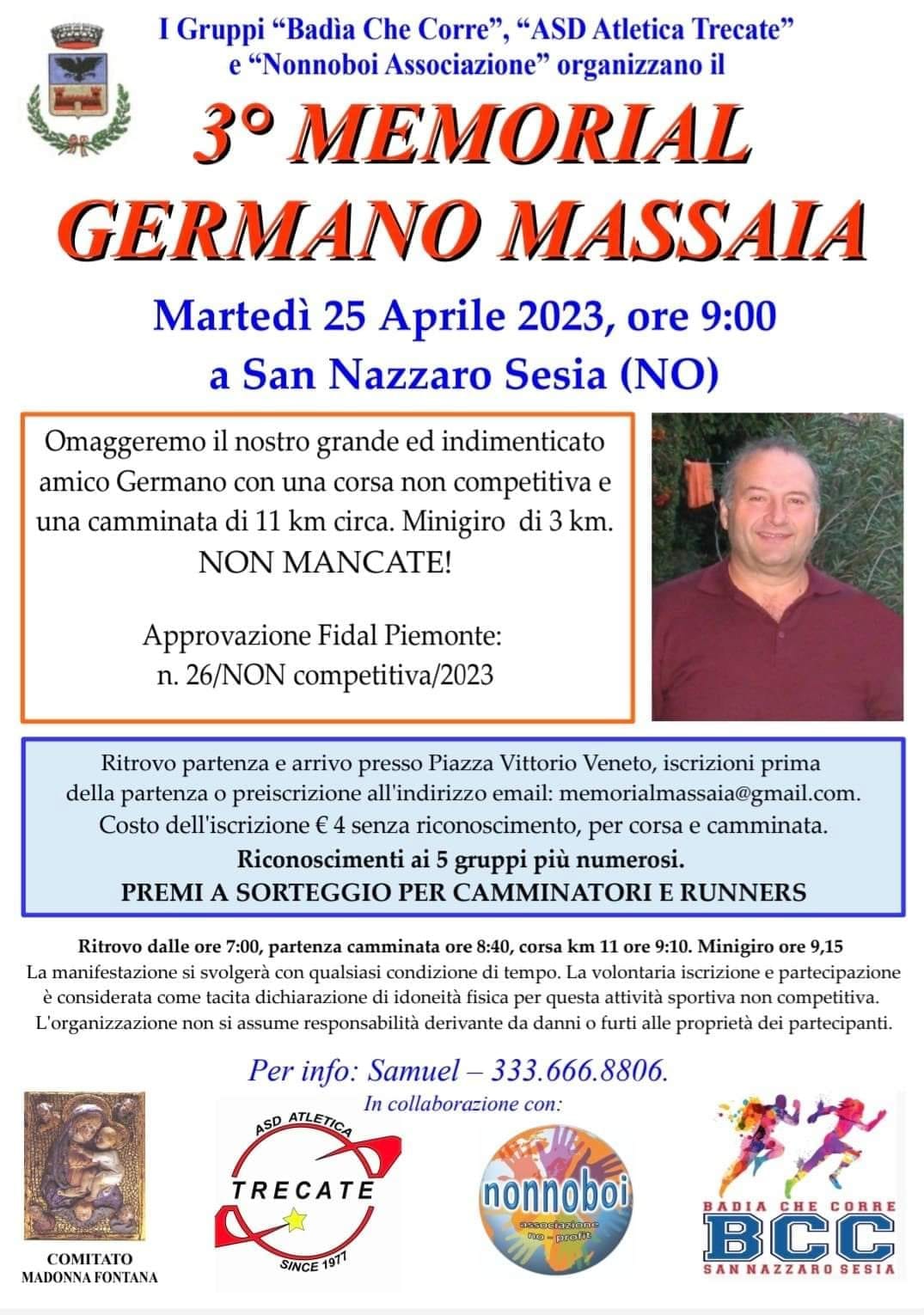 25 aprile a San Nazzaro Sesia, dalla mattina, camminate non competitive e corse in memoria di Germano