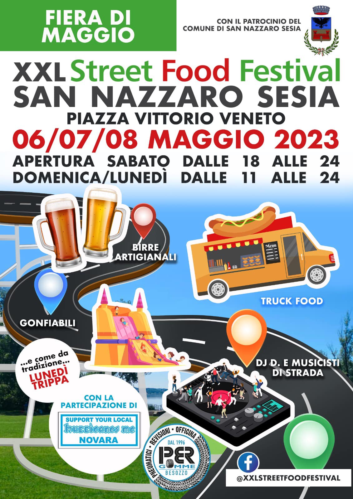 Vi ricordiamo le tre giornate di Street Food Festival il 6/7/8 maggio, in Piazza a San Nazzaro Sesia ( Food Truck, birre, DJ e musicisti di strada, gonfiabili per bambini, e LUNEDI’ TRIPPA)